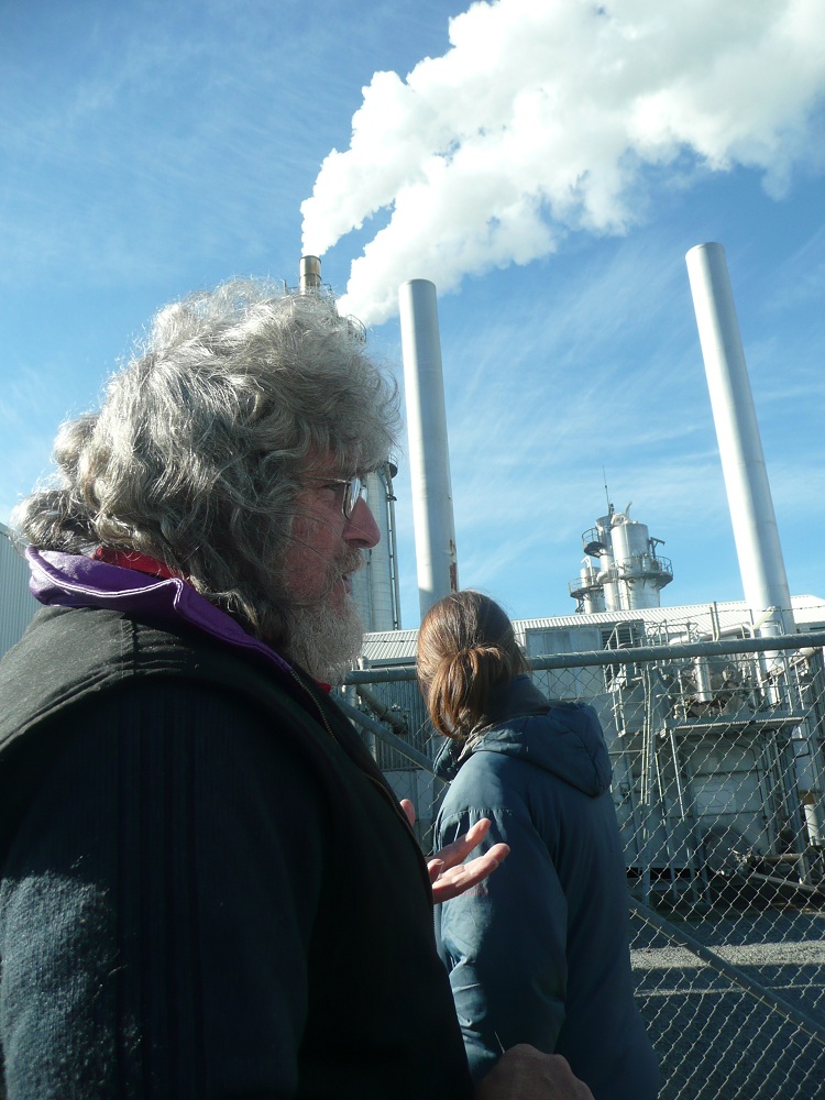 From Shell’s Kapuni operations we travelled north and inland from Waitara to Shell and the billionaire Todd family’s Motunui, Mangahewa and McKee plants. Local’s spoke of the fights in the 80s to stop pollution of the reefs and now of unknown gas clouds which virtually fill the sky, of rusting gas pipes threatening hundreds of homes and schools with potential leaks and explosions, trucks that speed down their rural roads carrying flammable and toxic wastes, and roaring gas flares that keep people awake at night for months on end. Resident Margaret Smith can now see 17 wells from her house and more are to come.