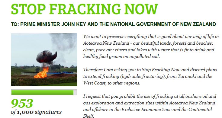Therefore I am asking you to Stop Fracking Now and discard plans to extend fracking (hydraulic fracturing), from Taranaki and the West Coast, to other regions.