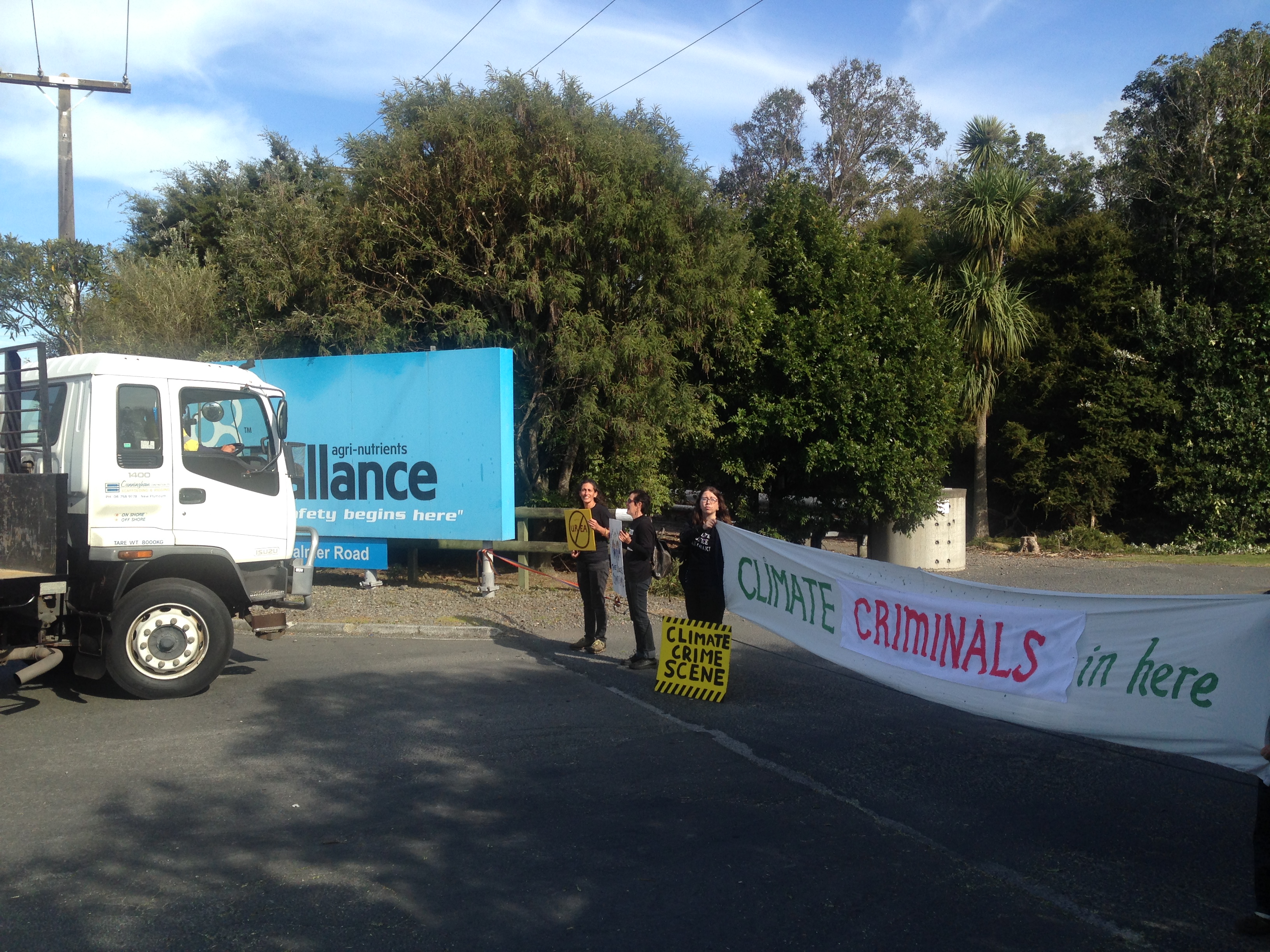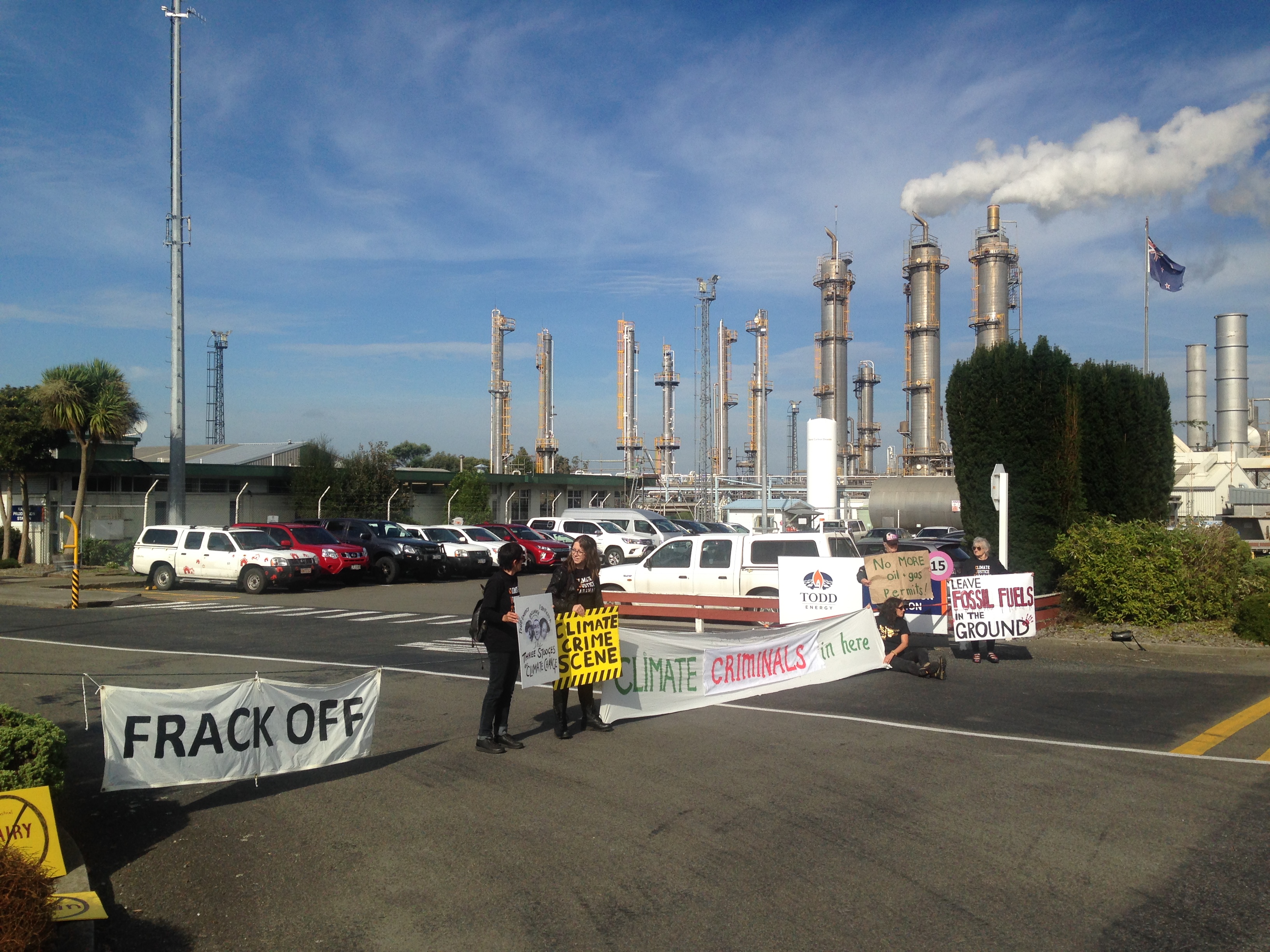 Climate protectors disrupted activities at drilling company Todd Energy, chemical fertiliser manufacturer Ballance Agri-Nutrients and Fonterra in southern Taranaki today to make it clear that the time for real climate action is now.