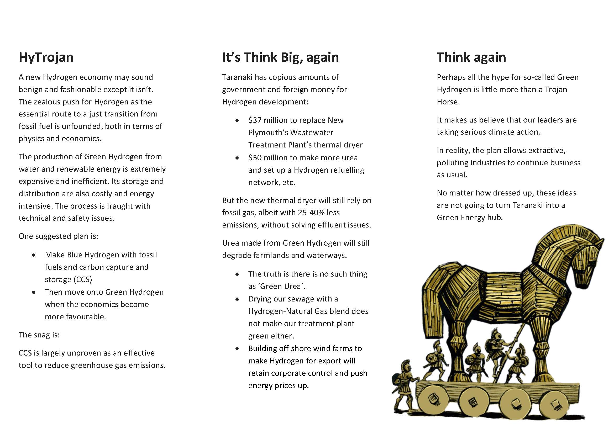 “As benign and fashionable a Hydrogen economy may sound, the zealous push for it as the essential route to a just transition is unfounded, both in physics and economic terms,” explained Climate Justice Taranaki researcher Catherine Cheung.
