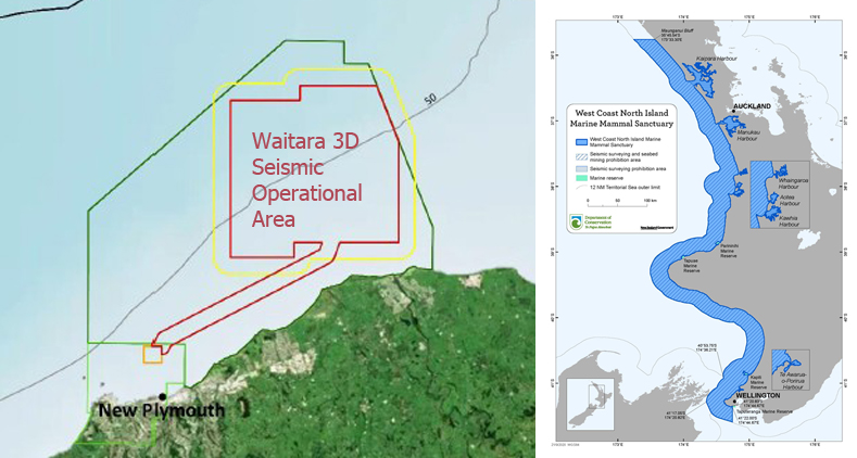 The vessel Southern Express has begun a seismic survey for Greymouth Petroleum off the coast of Waitara and west towards New Plymouth. The survey area is within the West Coast North Island Marine Mammal Sanctuary.