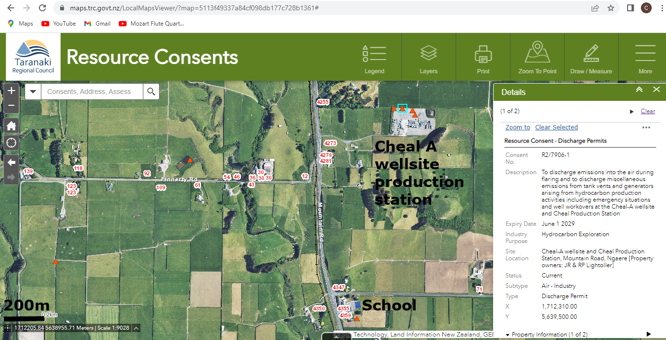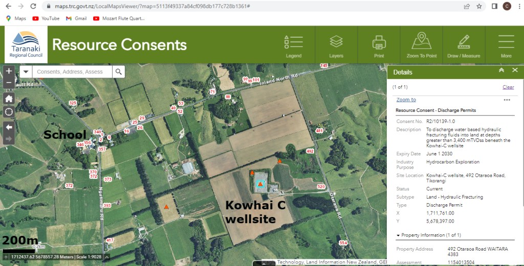Here in Taranaki, we have oil and gas wellsites a few hundred metres from homes and schools. As an example, Greymouth Petroleum’s Kowhai B and C wellsites both have numerous homes within a 2 kilometres radius, and the Tikorangi school and play centre are barely a kilometre away. Each of these wellsites have at least eight wells, most if not all have been fracked. Similarly, the Cheal A and B wellsites between Stratford and Eltham are also surrounded by homes. Cheal A is less than a kilometer from the Ngaere school.