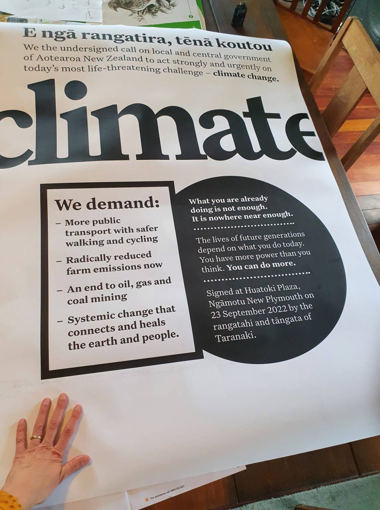 The event will include live music and speakers, and an opportunity to take the message to the heart of government by signing a large, colourful open letter to be presented to New Plymouth MP Glen Bennett.