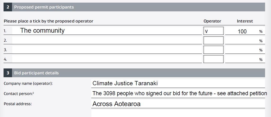 to destroy the land, waterways and atmosphere, we are making an alternative bid in defence of our planet. We are together bidding for the future – one without more oil and gas drilling in Taranaki” concludes Signer.