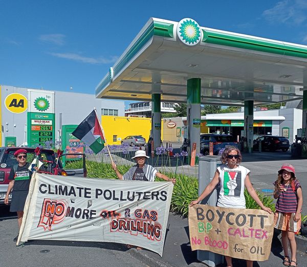 In the middle of a genocidal war in Gaza where over 27,000 Palestinians have been killed, oil companies including BP have been awarded exploration rights off the coast of Gaza by Israel’s Ministry of Energy. Chevron ( Caltex) has been fueling environmental destruction in Palestine for decades and is complicit in the violent colonial occupation and apartheid. Over the last few weeks Climate Justice Taranaki has joined with Palestine Solidarity Taranaki in a campaign to picket Caltex and BP.