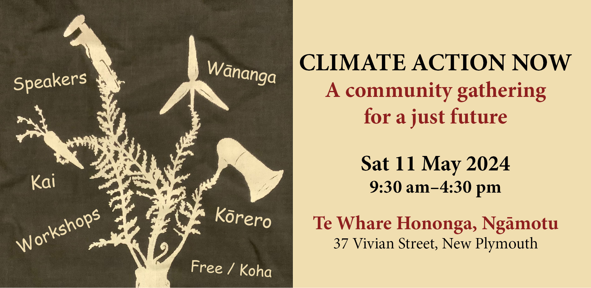 Climate Action Now will be a free, all day event with speakers and workshops focusing on some of the issues and solutions identified in Toitū Taranaki 2030.