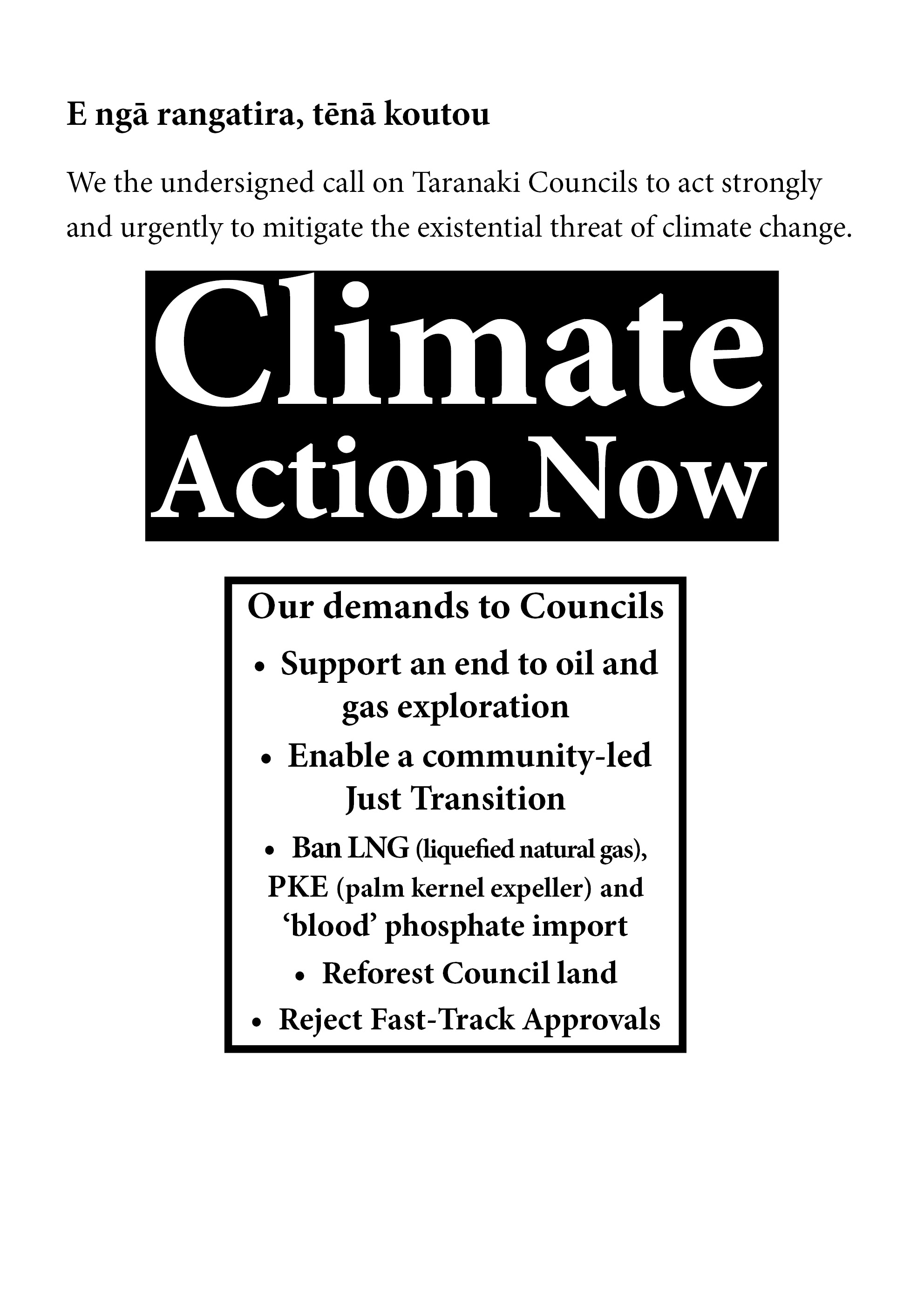 For those in Taranaki, join us at Puke Ariki Landing for a hīkoi / march to our local New Plymouth District Council.