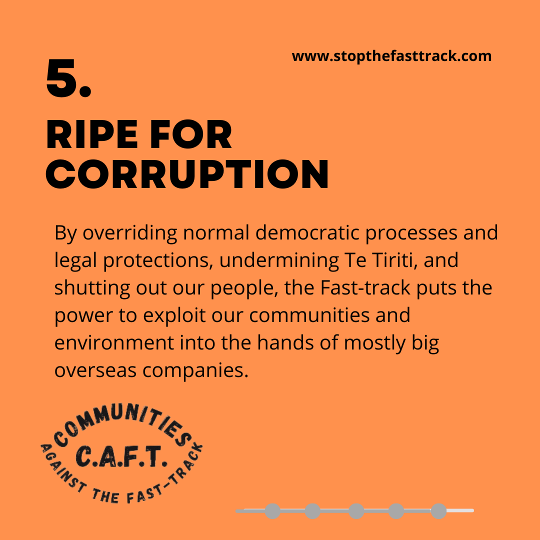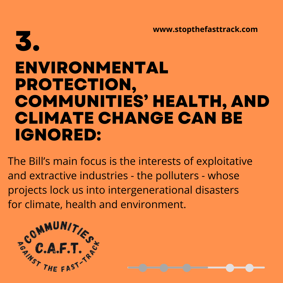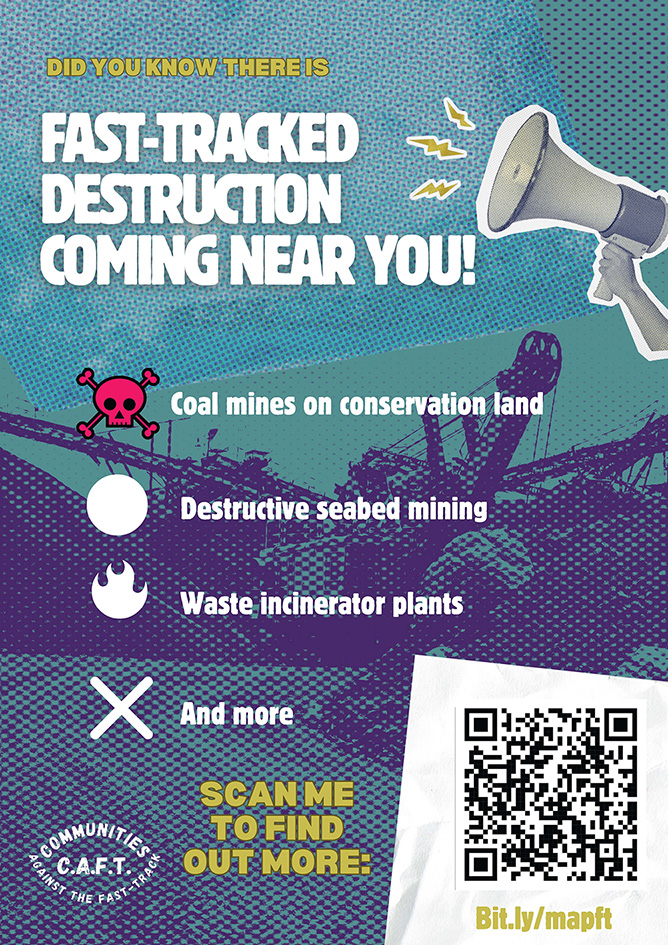 The third reading of the Bill is next week (from 16 Dec). Ask opposition MPs to clearly spell out that they will repeal the legislation and revoke, or at least review, the associated consents when they return to power. Such statements would help to undermine investor confidence in companies that are seeking Fast-Track Approvals, and put some of the would-be projects to bed.