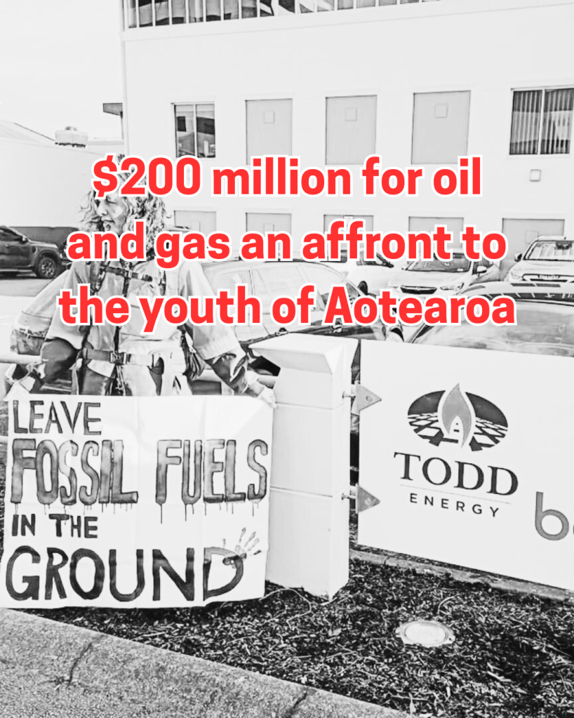 “It is obvious that MPs like Shane Jones and our local New Plymouth MP David McLeod are stuck in the dark ages when it comes to taking urgent action on climate change and have demonstrated once again that they do not understand that there is no economy on a dead planet. For decades, the neoliberal agenda of resource extraction to accumulate more and more wealth for the rich and powerful has driven us into what is now called the sixth mass extinction. Driven by corporate greed, Jones, McLeod and the current government are quite happy to sacrifice the future of a liveable climate for coming generations for short-term profits for their mates in the oil and gas industry. It is an absolute affront to the youth of Aotearoa that this government is happily throwing their future away for fleeting economic gain.”