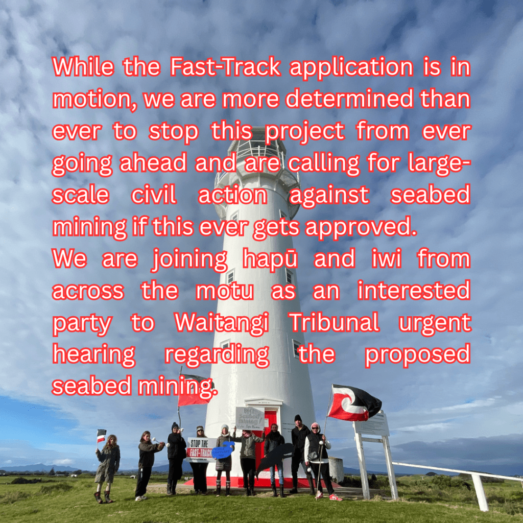 The community group Climate Justice Taranaki is joining hapū and iwi from across the motu as an interested party to Waitangi Tribunal urgent hearing regarding the proposed seabed mining of the Taranaki coast by Trans-Tasman Resources (TTR) under the Fast-Track legislation.