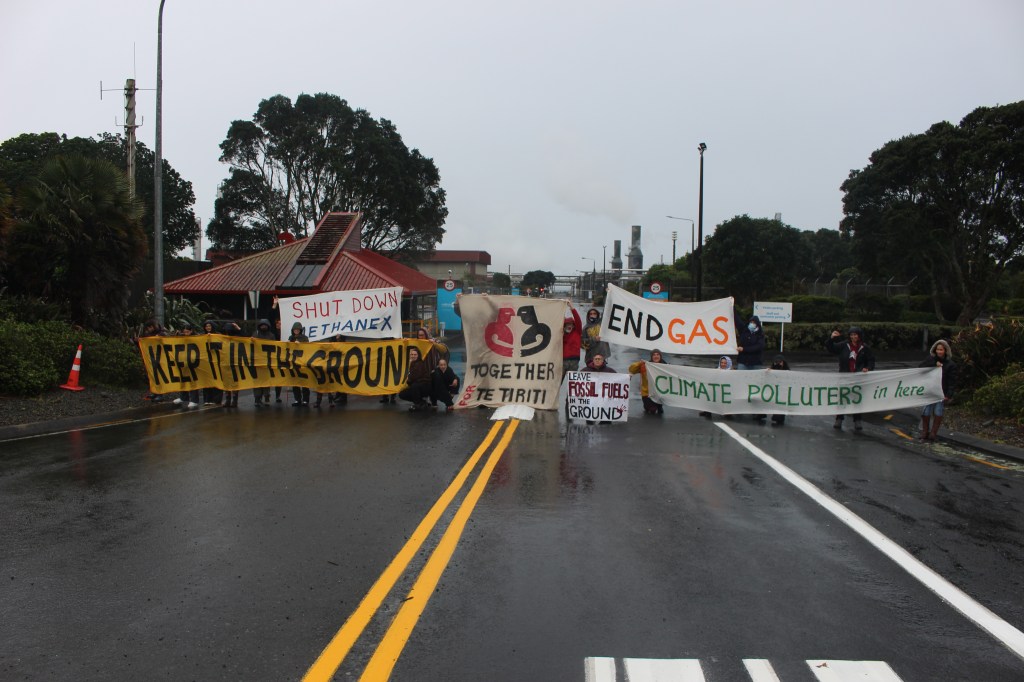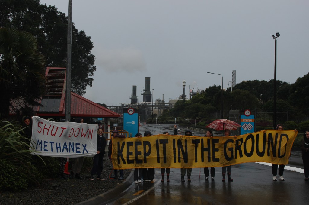 Climate Justice Taranaki (CJT) and other activists from across the country protested at the Canadian owned Methanex gas-fed plant in Taranaki today. “The action was to highlight why communities across Aotearoa face rising energy prices yet the New Zealand government gives hundreds of millions of dollars in tax payer subsidies to the Canadian gas company and pursues, rather than transitions the country off fossil fuels,” said CJT spokesperson Tuhi-Ao Bailey.
